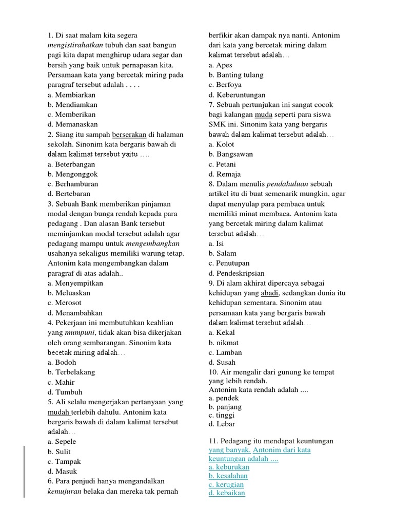 Contoh Soal Sinonim Antonim H M Perfected Page S Facebook
